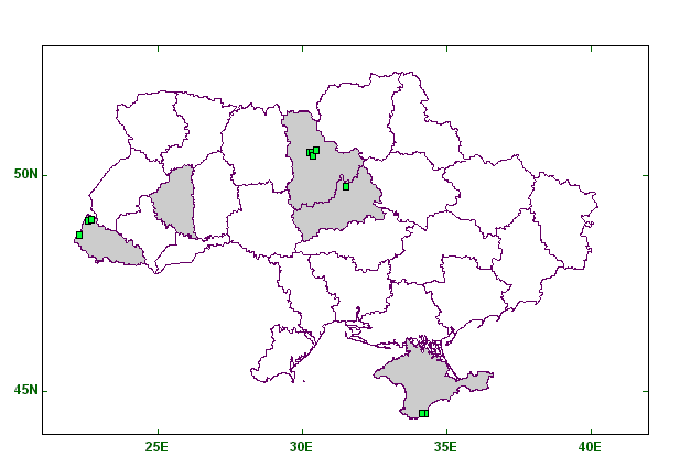 Distribution of the Gomphales in Ukraine